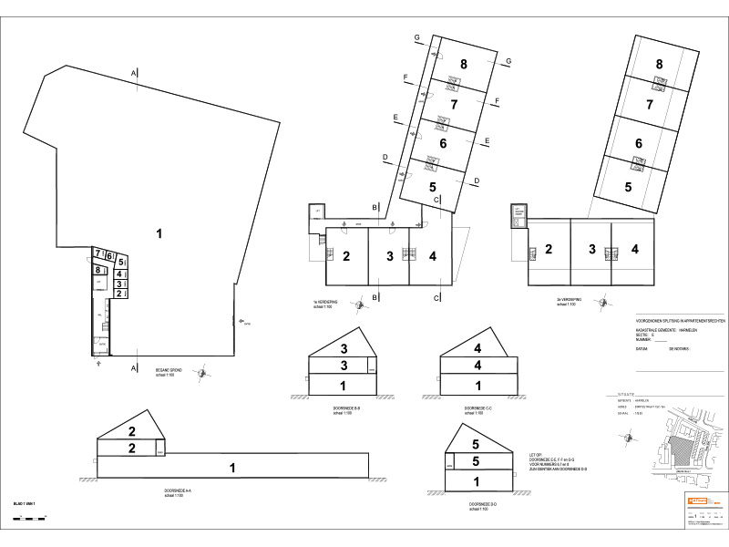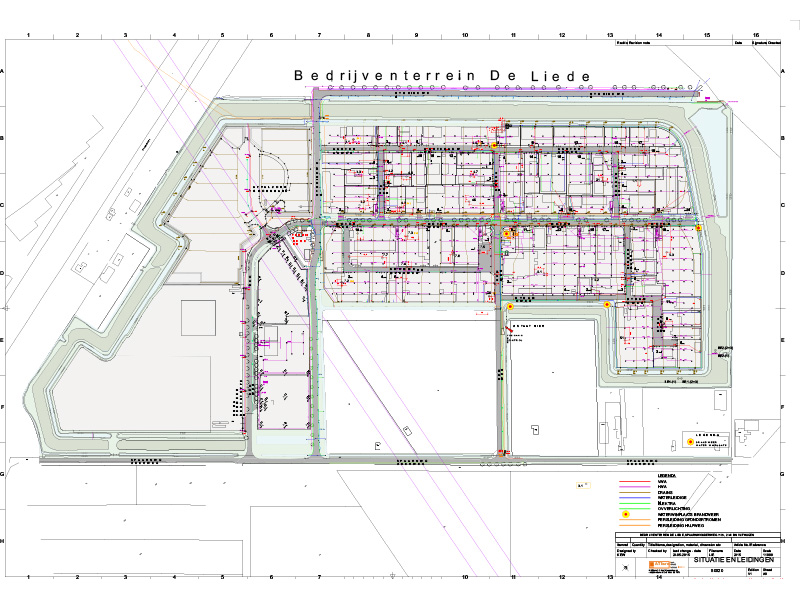- terreintekeningen van bedrijventerreinen inclusief ondergrondse infra, en splitsingen van kavels
