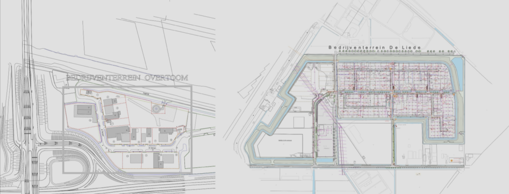 - ✓terreintekeningen van bedrijventerreinen inclusief ondergrondse infra, en splitsingen van kavels